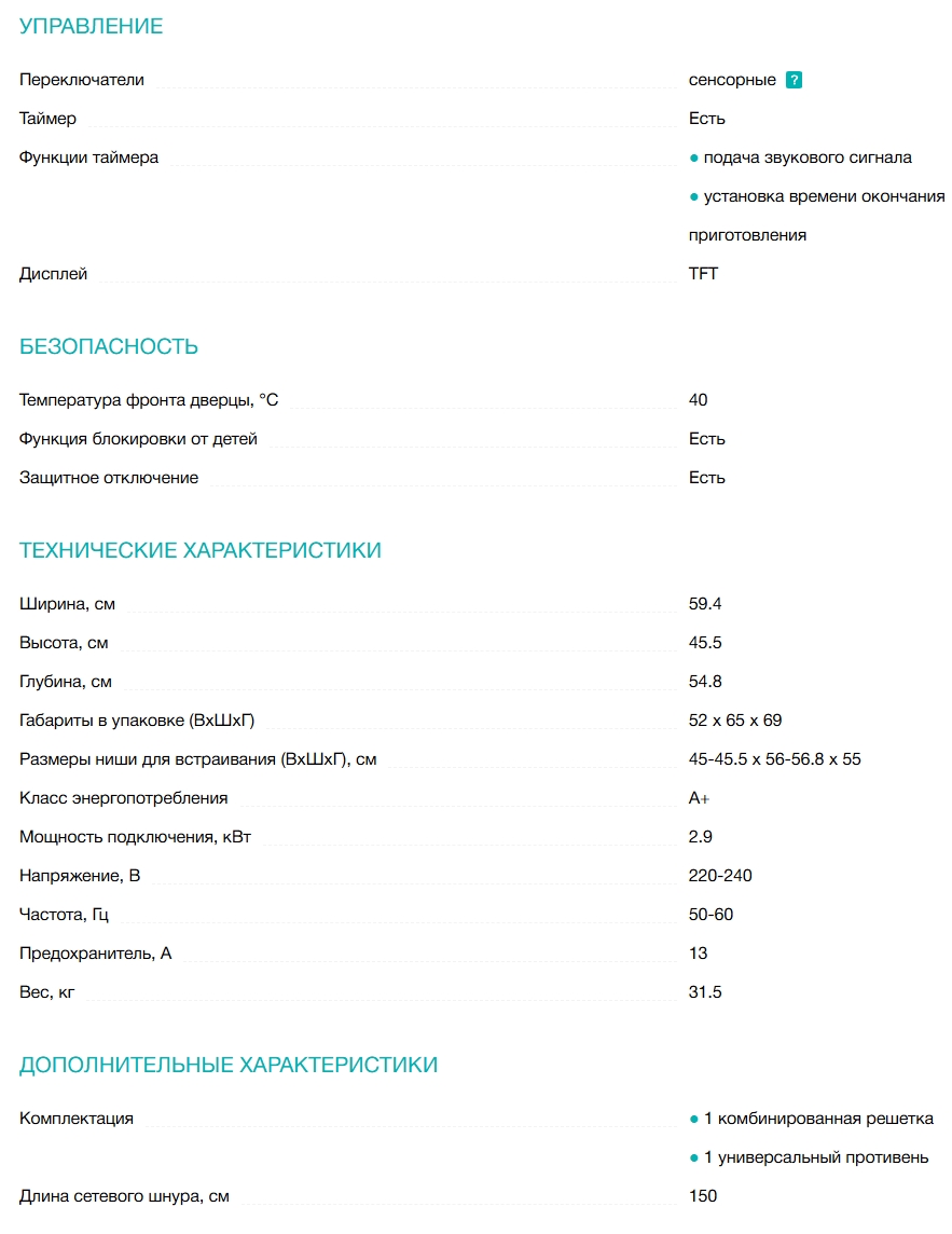 Объём духовки |