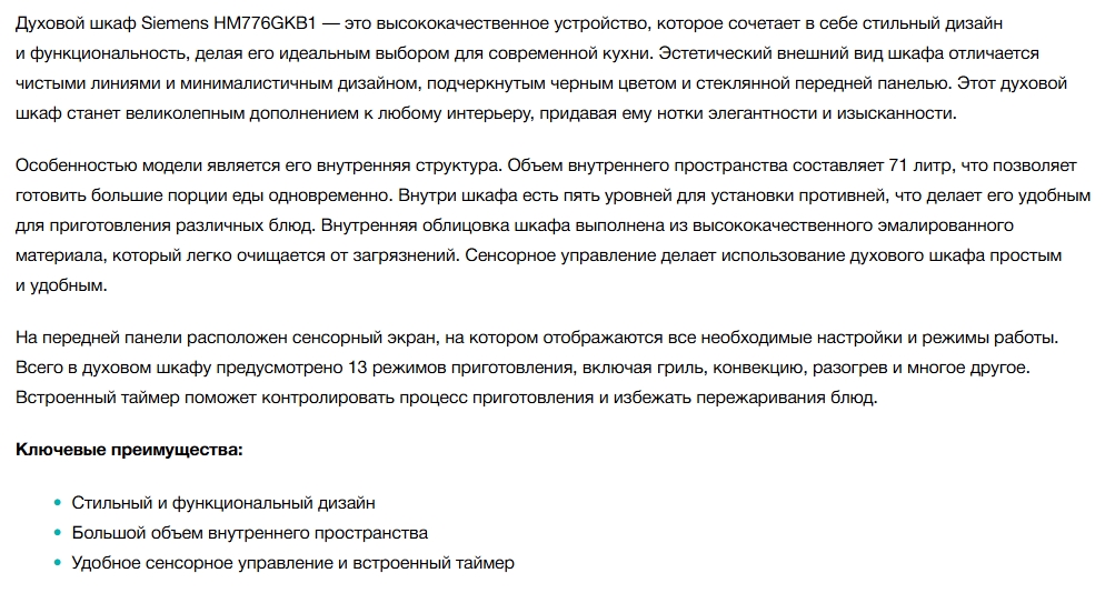 Электрический духовой шкаф Siemens (Сименс) HM776GKB1