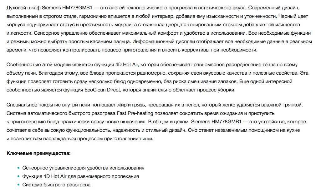 Электрический духовой шкаф Siemens (Сименс) HM778GMB1