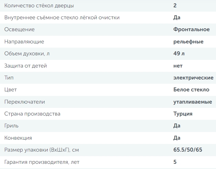 Объём духовки |