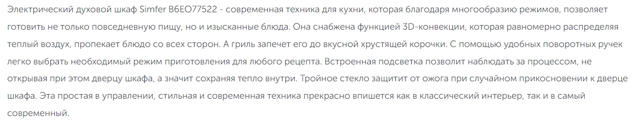 Электрический духовой шкаф Simfer (Симфер) B6EO77522