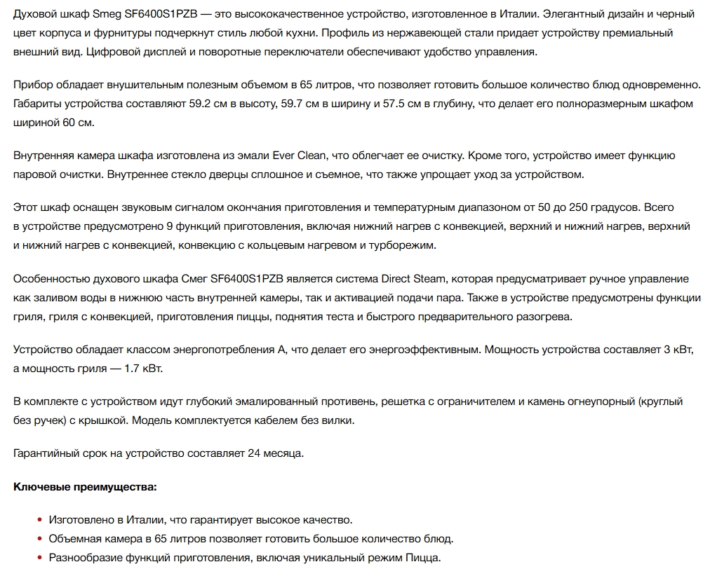 Электрический духовой шкаф Smeg (Смег) SF6400S1PZB
