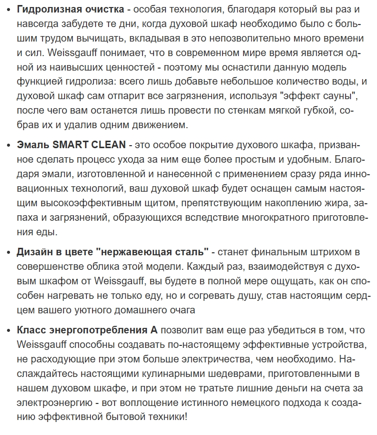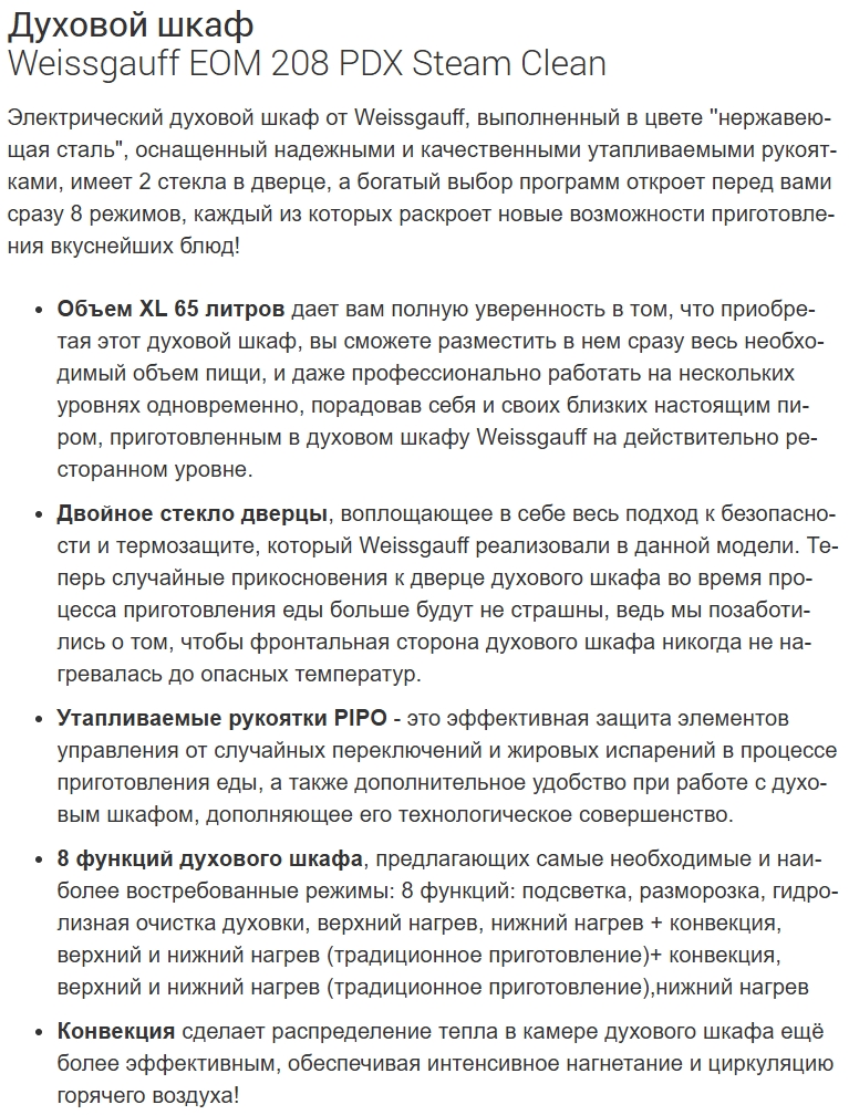 Электрический духовой шкаф Weissgauff (Вайсгауф) EOM 208 PDX Steam Clean