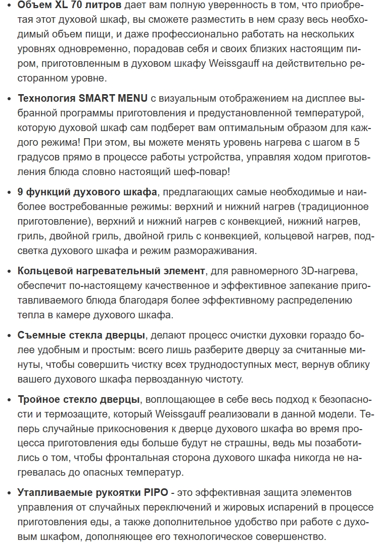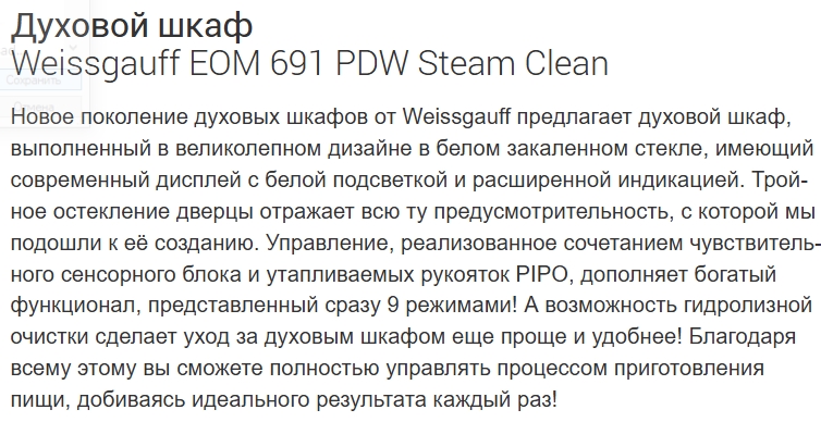 Электрический духовой шкаф Weissgauff (Вайсгауф) EOM 691 PDW Steam Clean