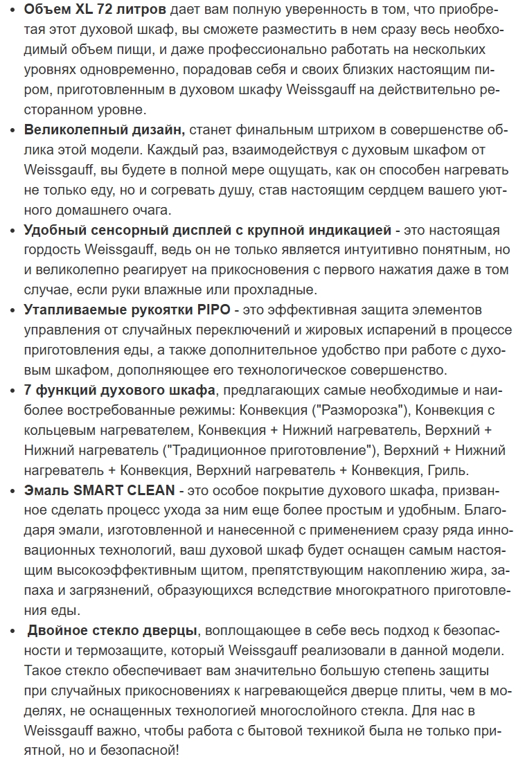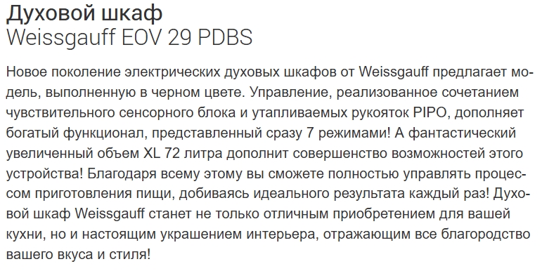 Электрический духовой шкаф Weissgauff (Вайсгауф) EOV 29 PDBS