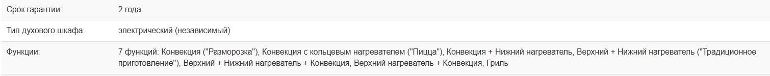 Объём духовки |