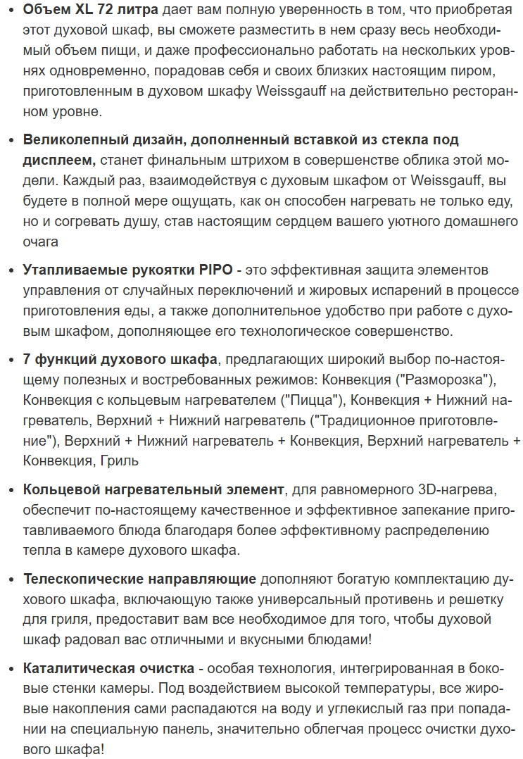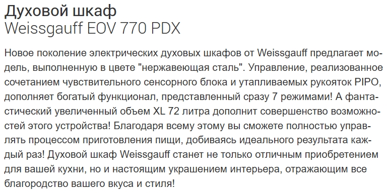 Электрический духовой шкаф Weissgauff (Вайсгауф) EOV 770 PDX