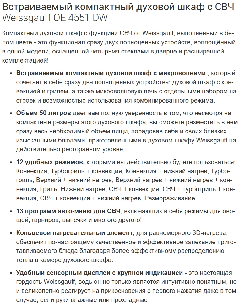 Электрический духовой шкаф Weissgauff (Вайсгауф) OE 4551 DW