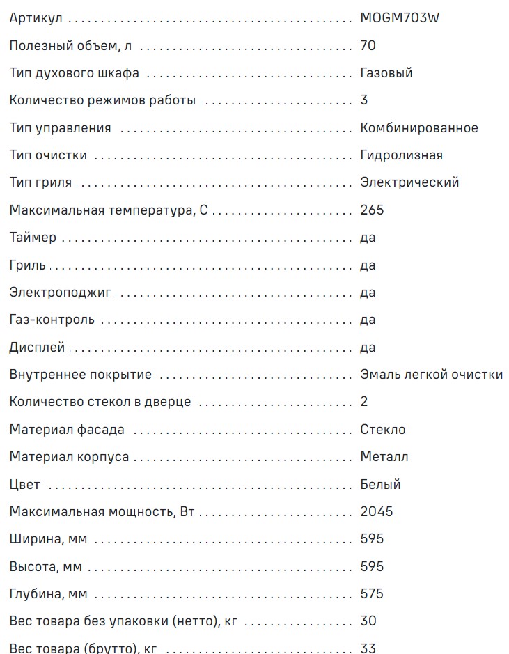 Газовый духовой шкаф MAUNFELD (Маунфилд) MOGM703W
