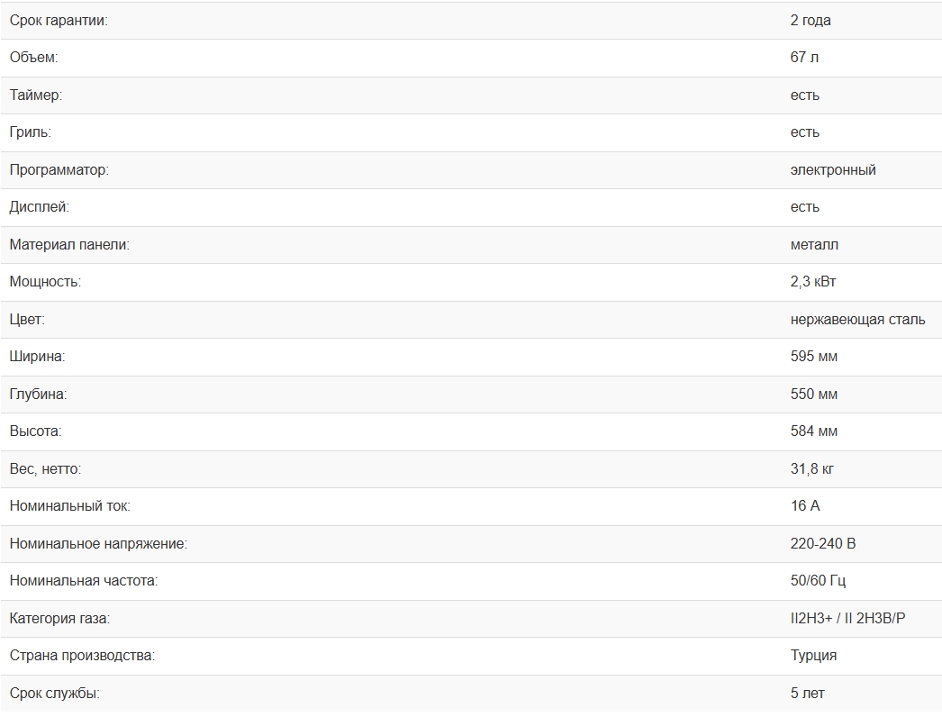 Объём духовки |
