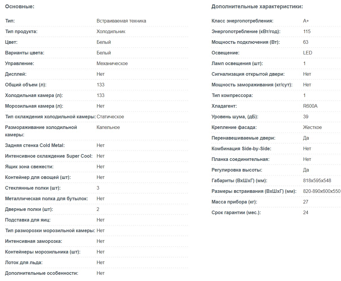 Встаиваемый холодильник Korting (Кёртинг) KSI 8181