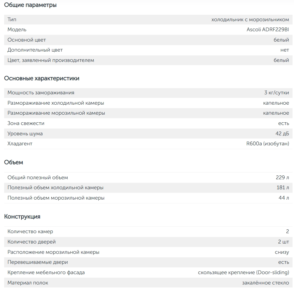 Встраиваемый холодильник Ascoli (Асколи) ADRF229BI