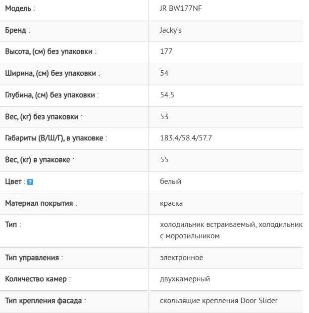 Встраиваемый холодильник Jacky's (Джекис) JR BW177NF