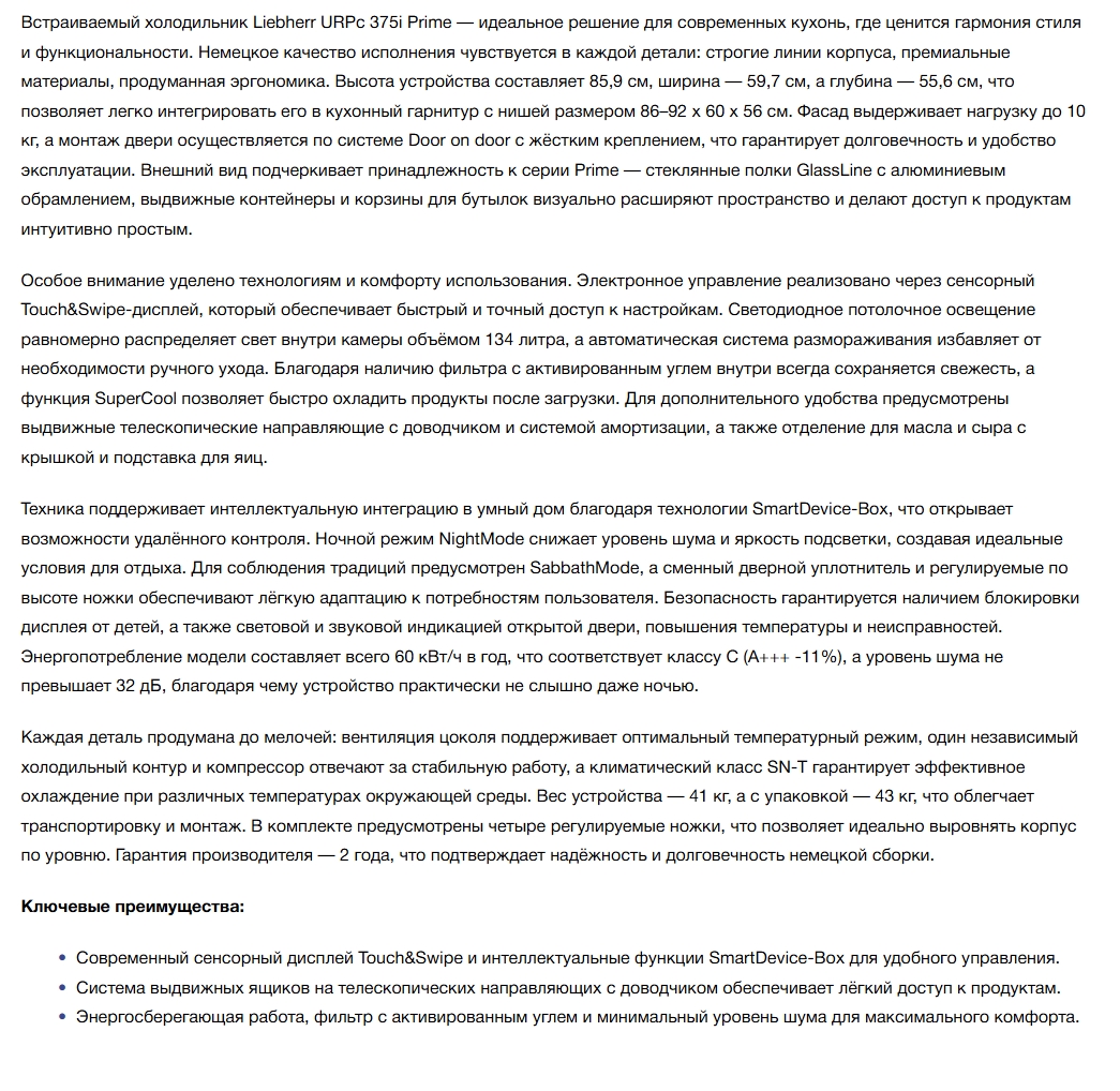 Встраиваемый холодильник Liebherr (Либхер) URPc 375i