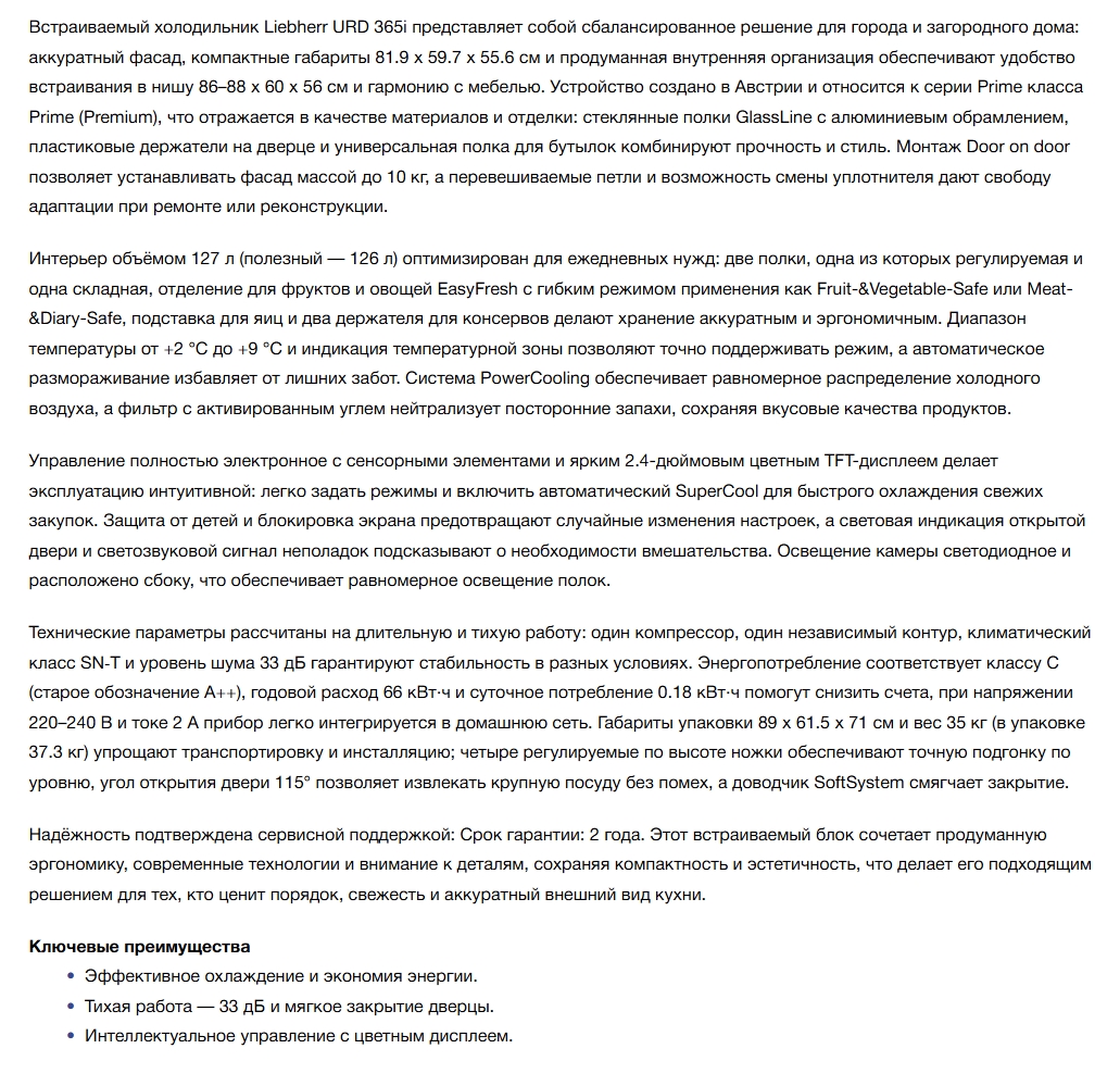 Встраиваемый холодильник Liebherr (Либхер) URPd 365i