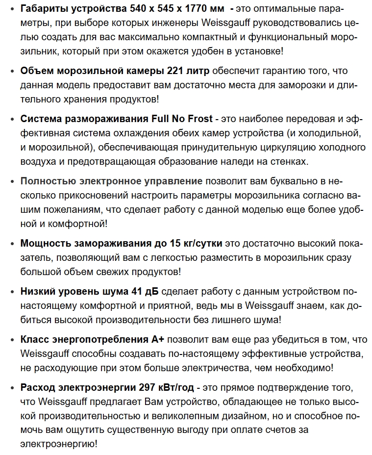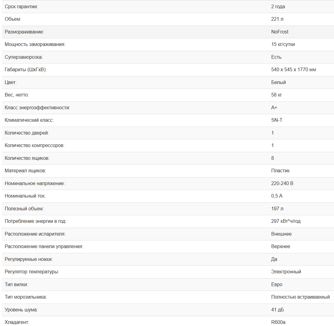 Встаиваемая морозильная камера Weissgauff (Вайсгауф) WFI 178 V