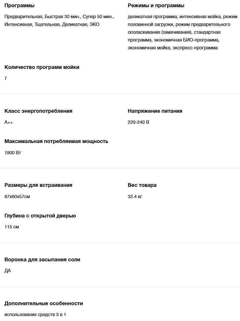 Количество программ мойки |