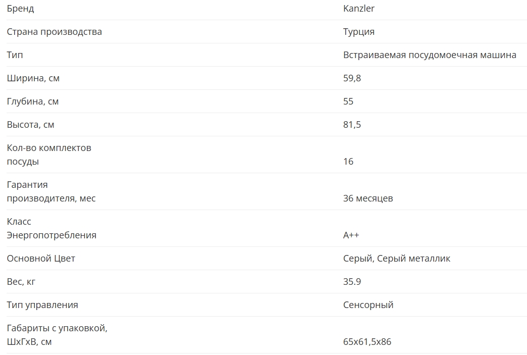 Встраиваемая посудомоечная машина KANZLER (Канцлер) S 056