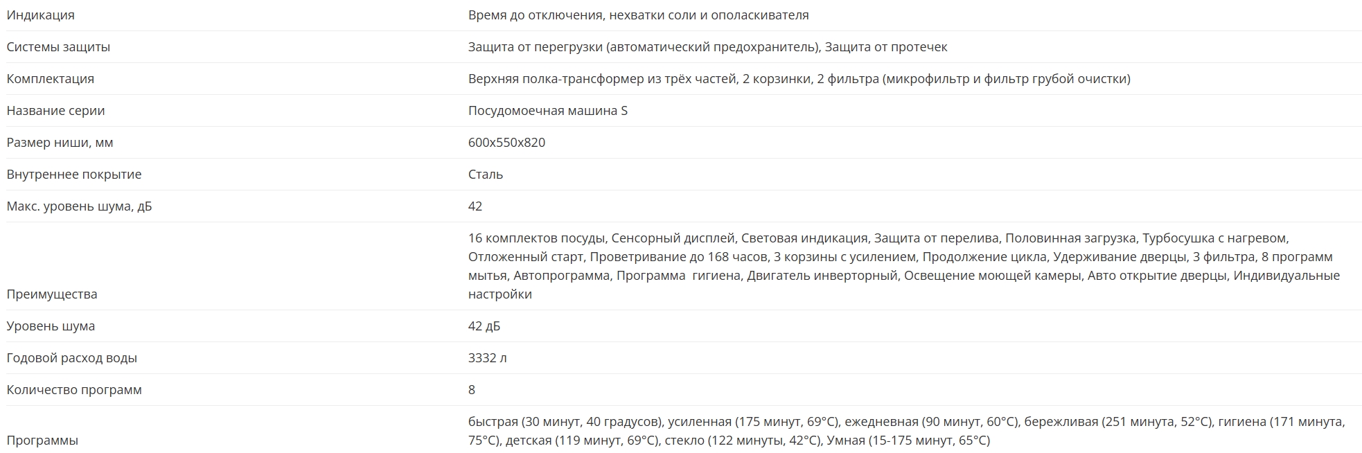 Количество программ мойки |