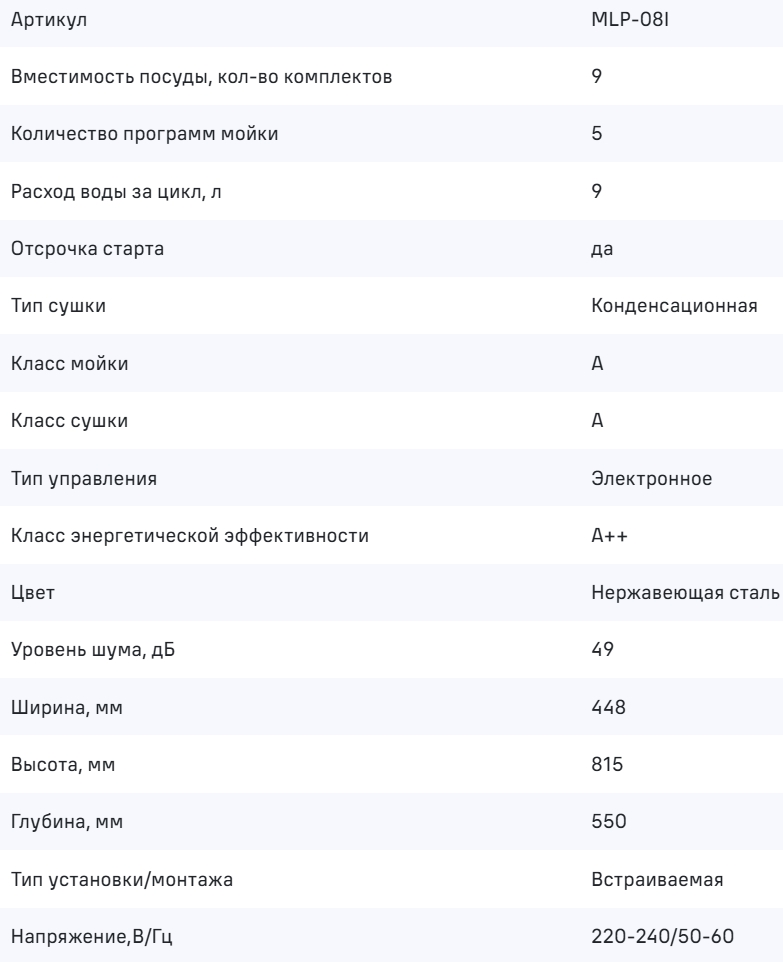 Встраиваемая посудомоечная машина MAUNFELD (Маунфилд) MLP-08 i