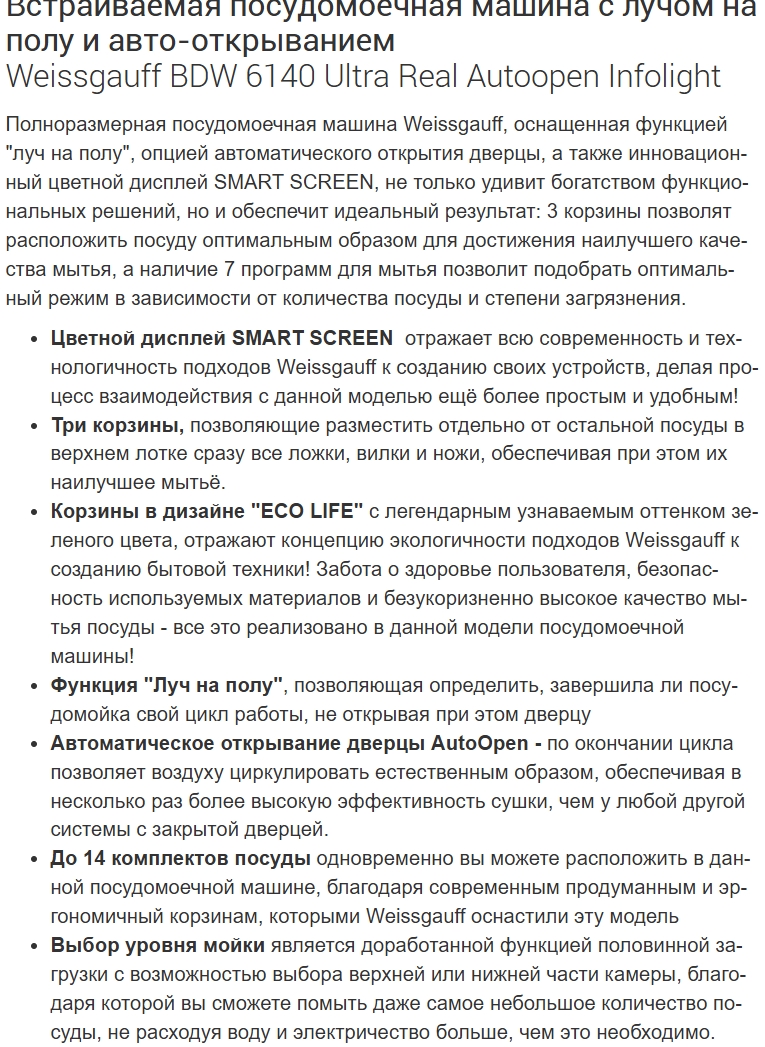 Встраиваемая посудомоечная машина Weissgauff (Вайсгауф) BDW 6140 Ultra Real Autoopen Infolight
