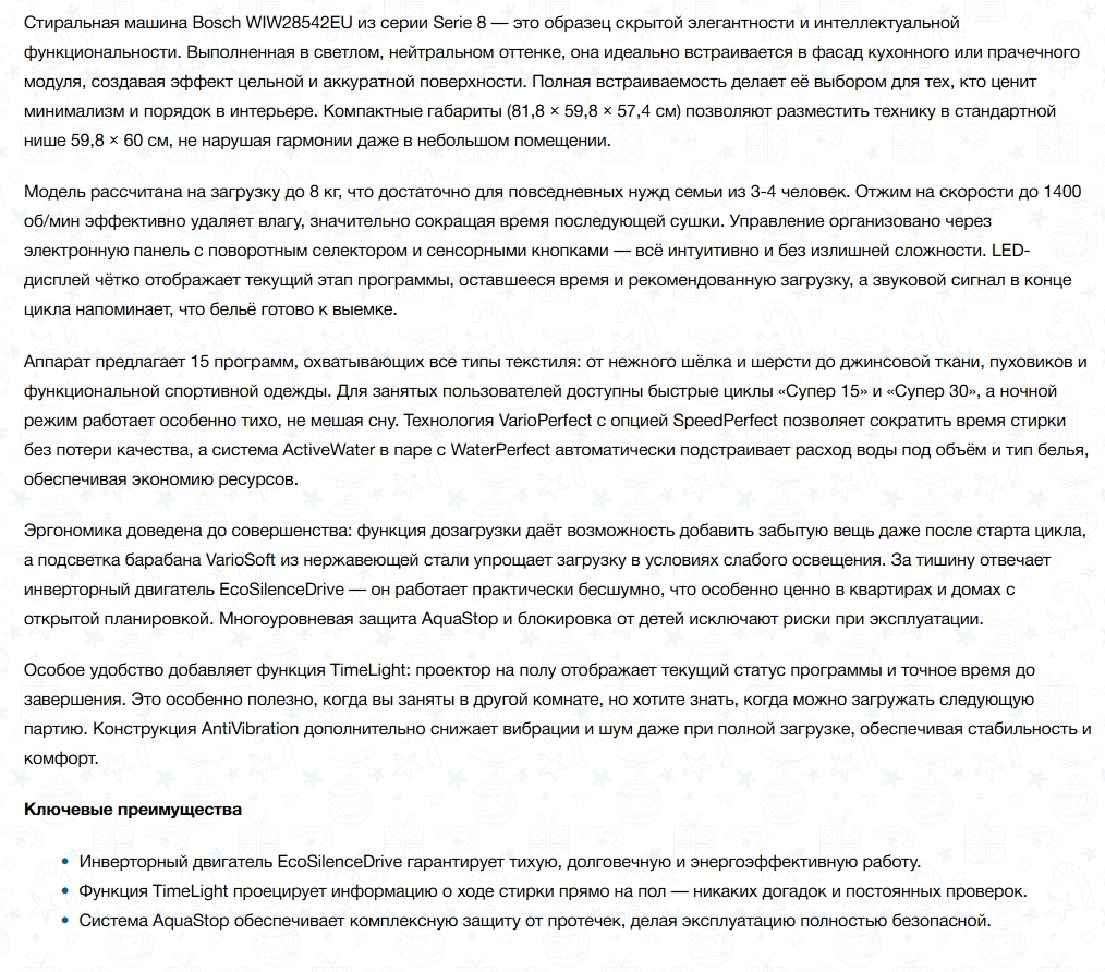 Встраиваемая стиральная машина Bosch (Бош) WIW28542EU