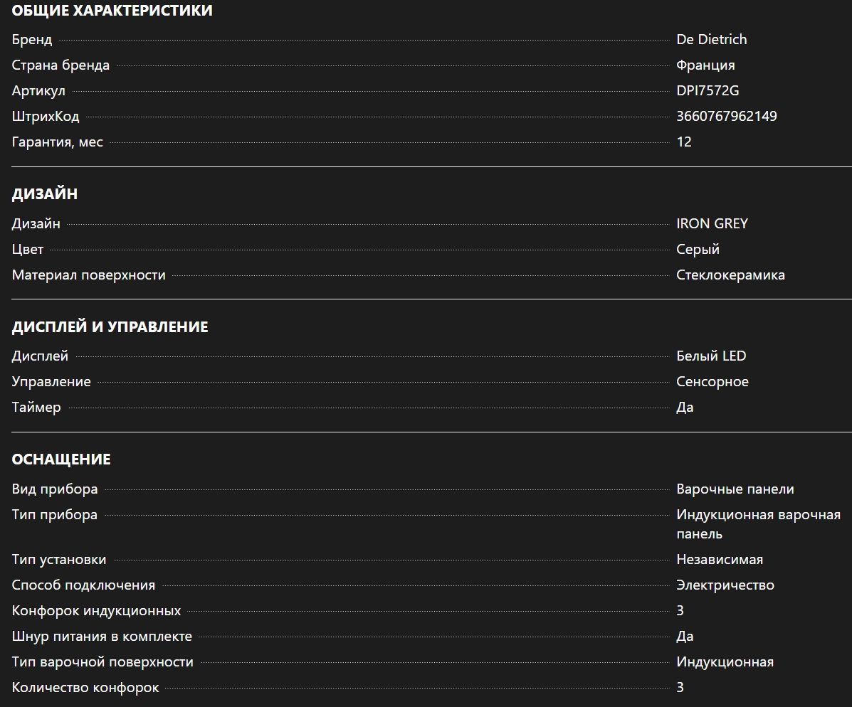 Индукционная варочная панель De Dietrich (Де Дитрих) DPI7572G