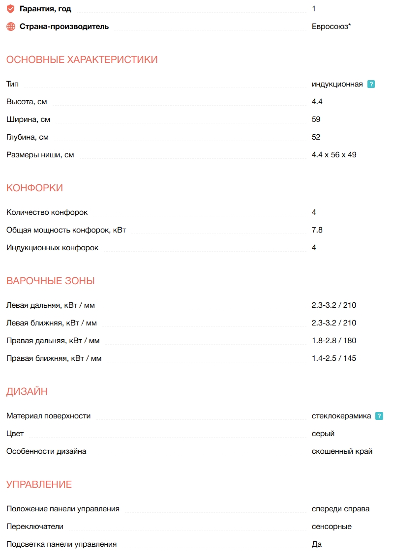 Конфорок индукционных |