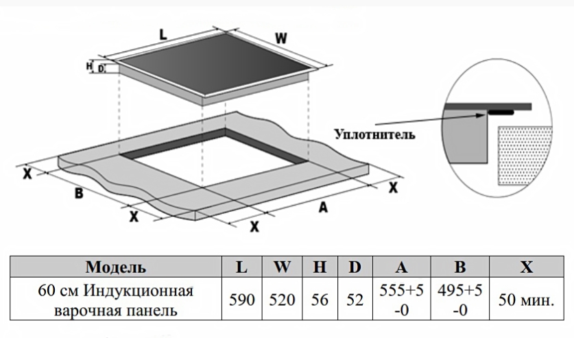 Размер ниши для встраивания (ШхГ) |