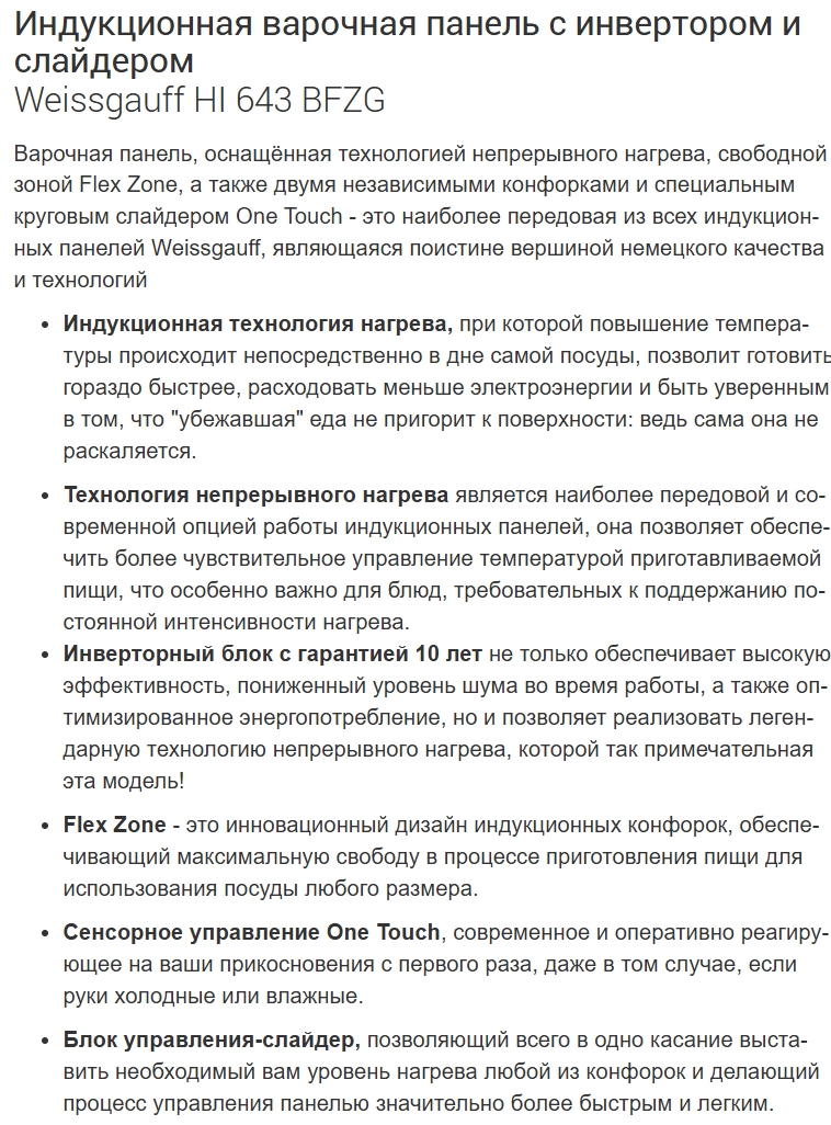 Индукционная варочная панель Weissgauff (Вайсгауф) HI 643 BFZG