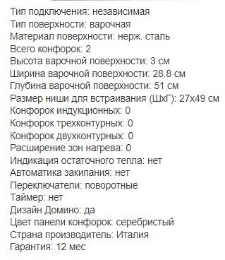 Конфорок индукционных |