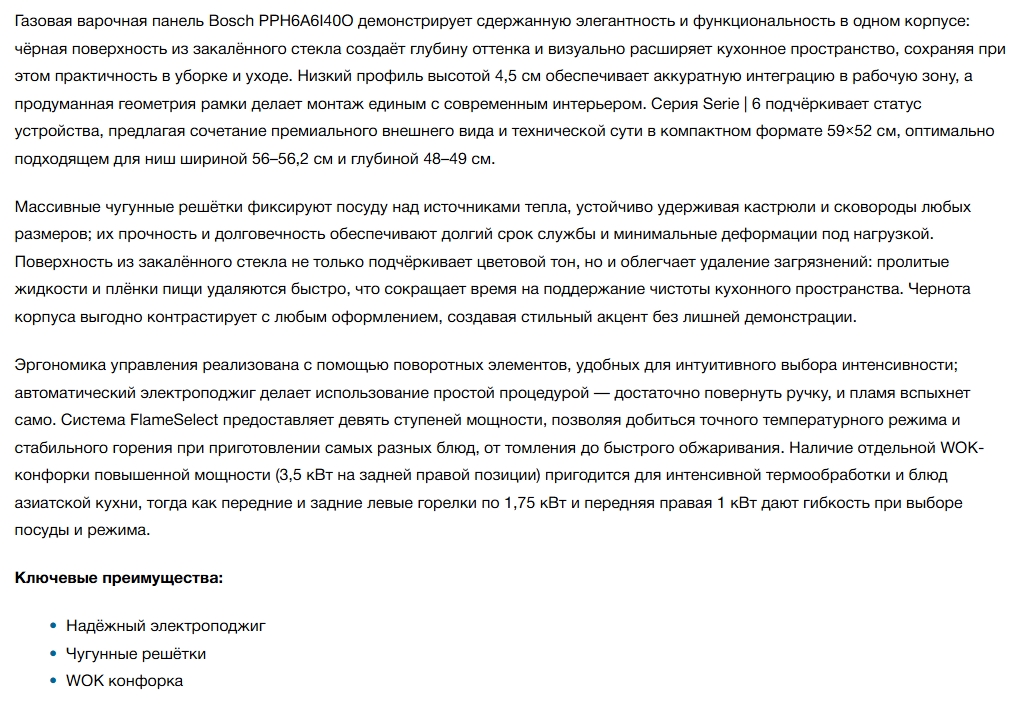 Газовая варочная панель Bosch (Бош) PPH6A6I40O