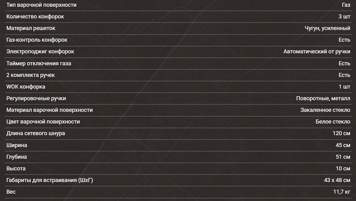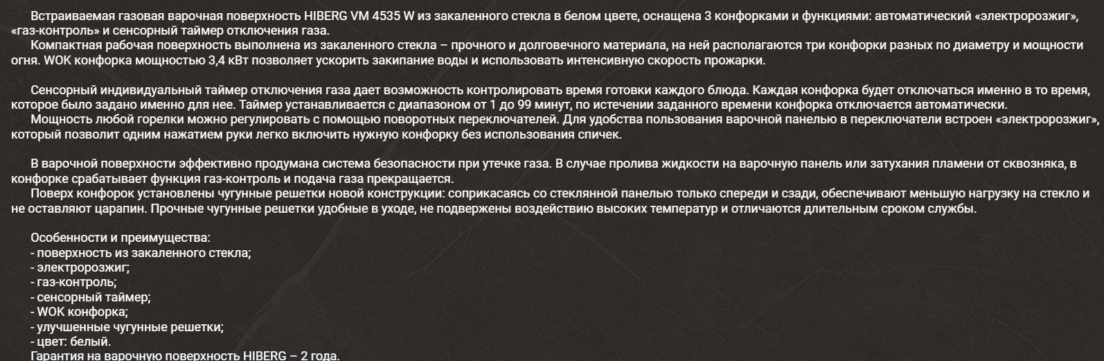 Газовая варочная панель Hiberg (Хайберг) VM 4535 W
