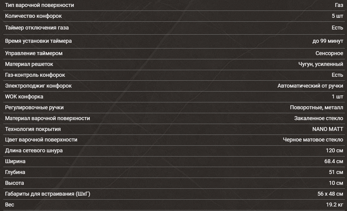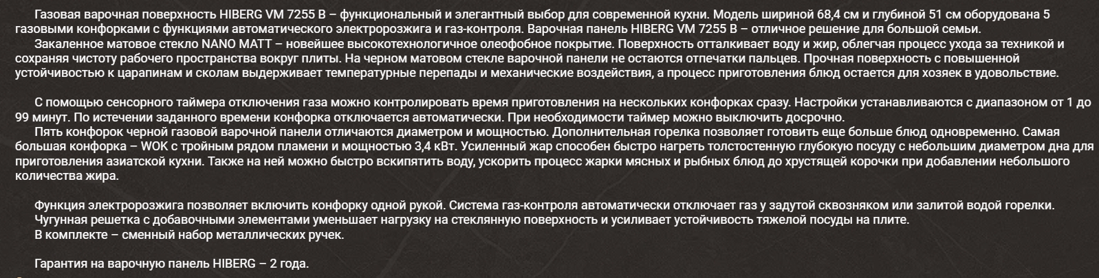 Газовая варочная панель Hiberg (Хайберг) VM 7255 B