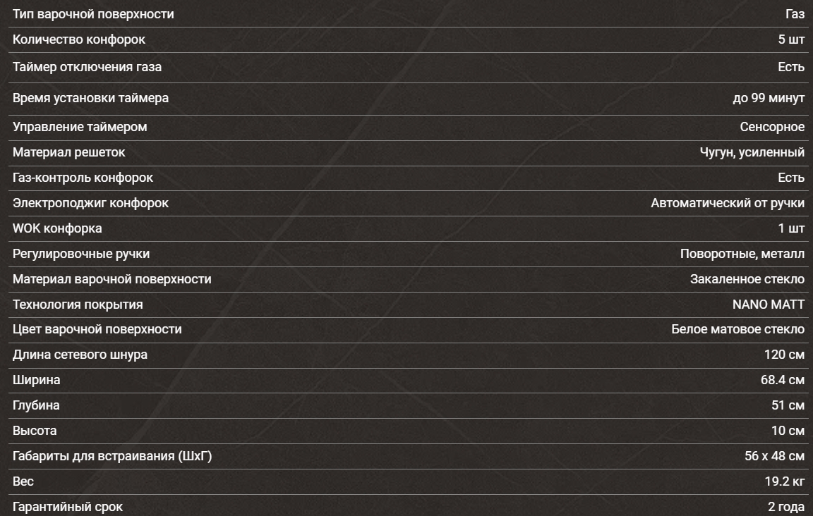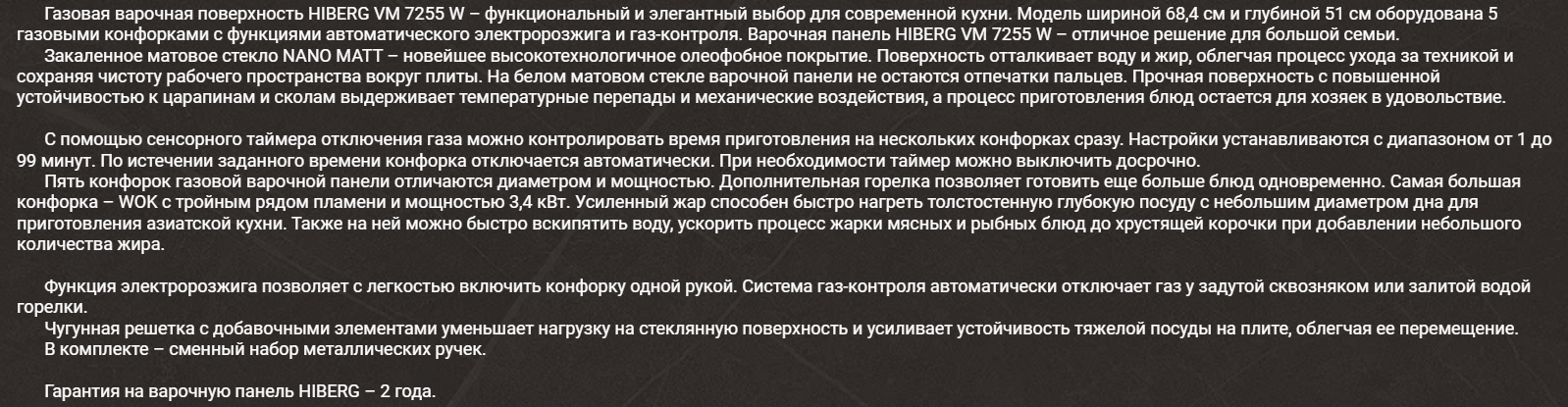 Газовая варочная панель Hiberg (Хайберг) VM 7255 W