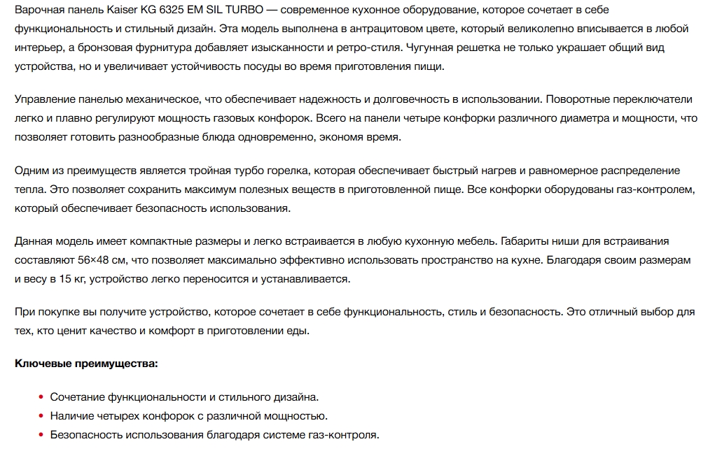 Газовая варочная панель Kaiser (Кайзер) KG 6325 Em Sil Turbo