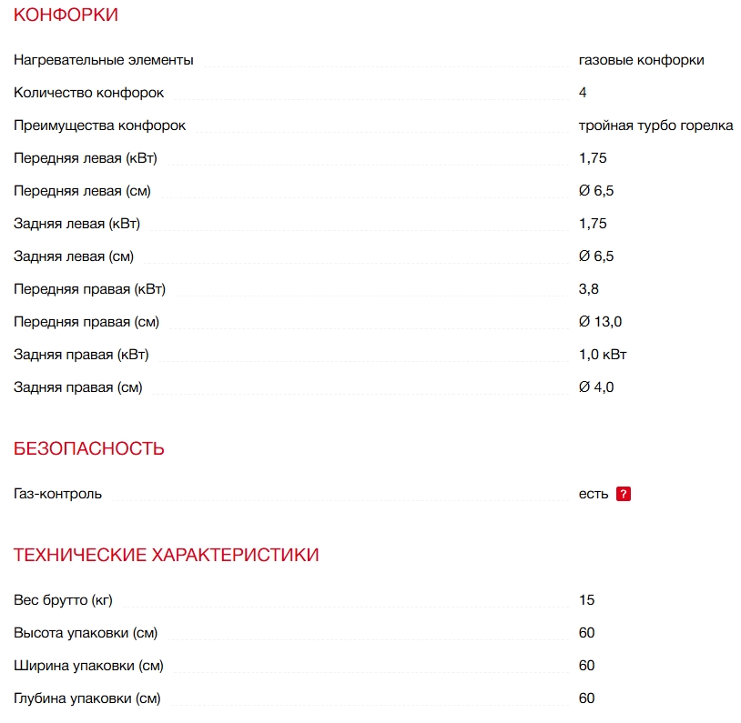 Газ-контроль конфорок |