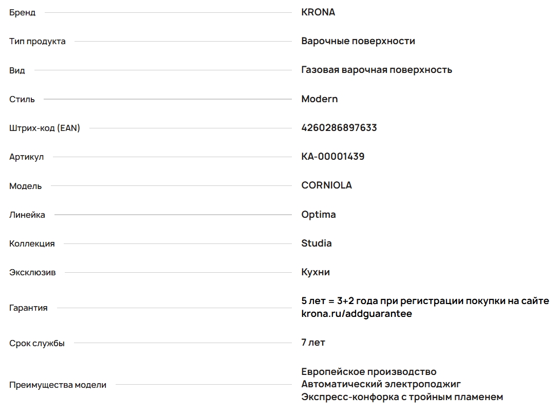 Газовая варочная панель Krona (Крона) CORNIOLA 45 BL