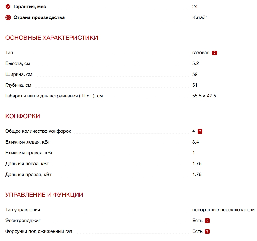 Газ-контроль конфорок |