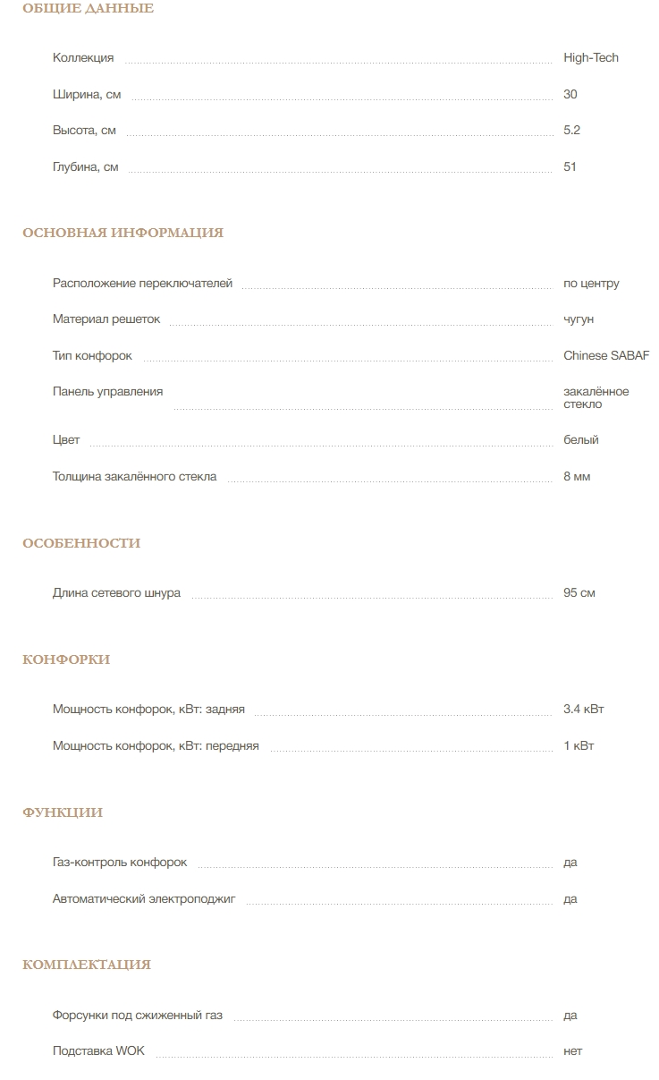 Газовая варочная панель MONSHER (Моншер) MGG 33 Blanc