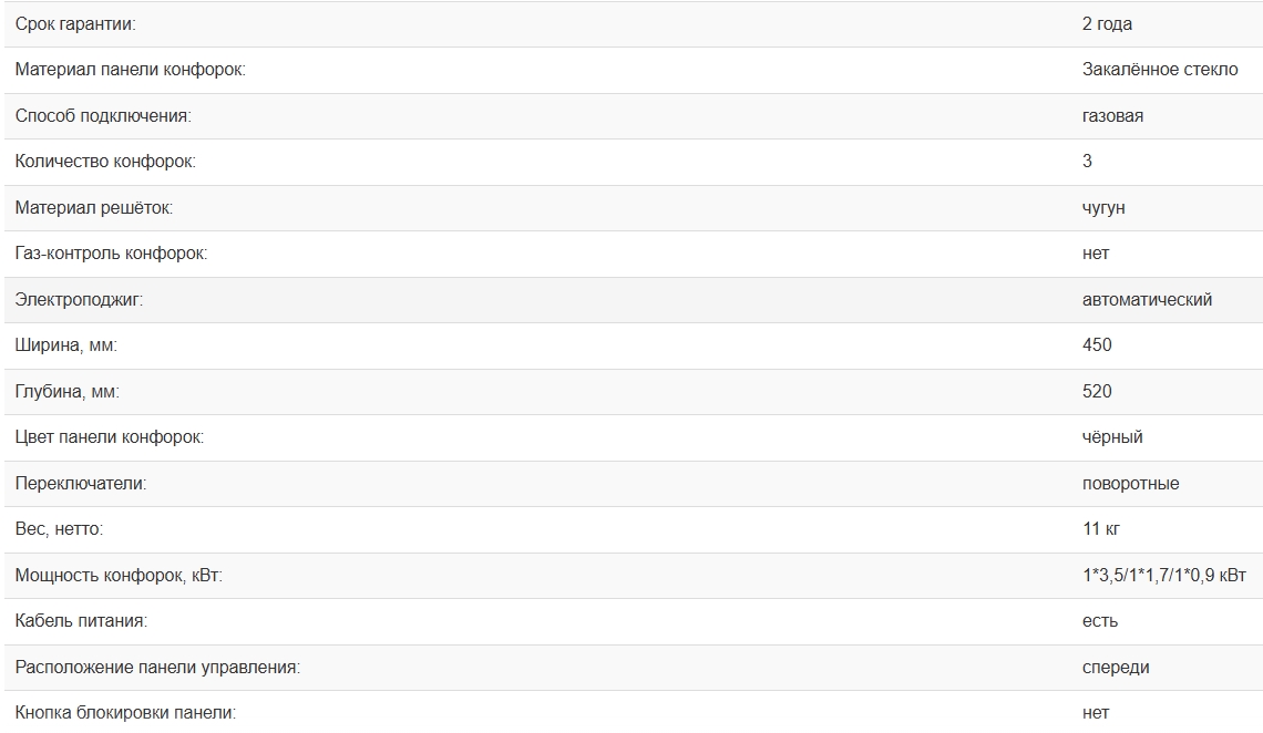 Всего конфорок |