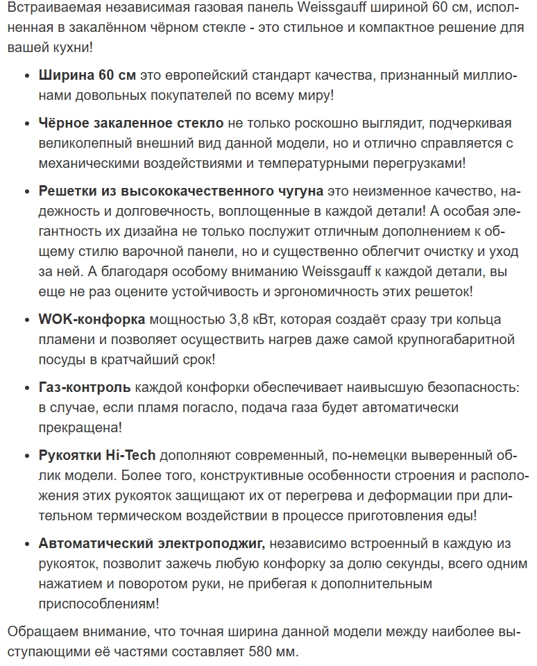 Газовая варочная панель Weissgauff (Вайсгауф) HGG 640 BGV