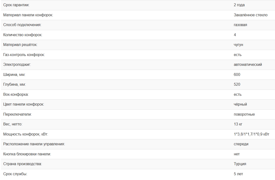 Всего конфорок |