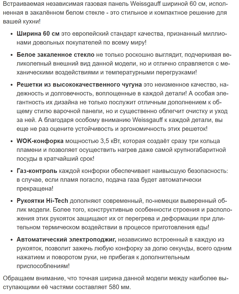 Газовая варочная панель Weissgauff (Вайсгауф) HGG 640 WGV