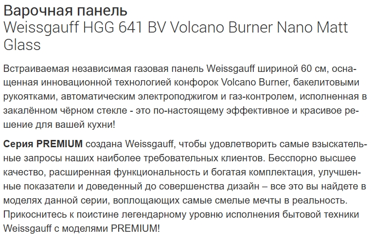 Газовая варочная панель Weissgauff (Вайсгауф) HGG 641 BV Volcano Burner Nano Glass