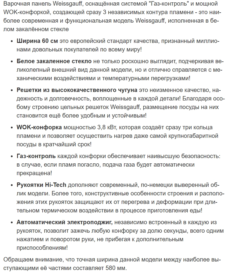 Газовая варочная панель Weissgauff (Вайсгауф) HGG 641 WGL