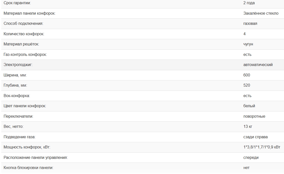 Всего конфорок |