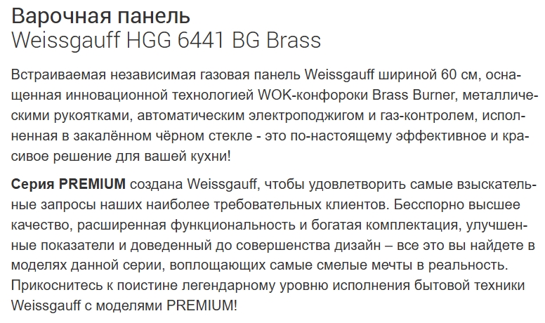 Газовая варочная панель Weissgauff (Вайсгауф) HGG 6441 BG Brass
