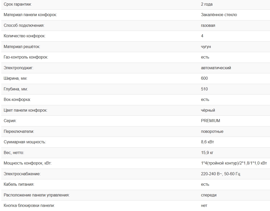 Всего конфорок |