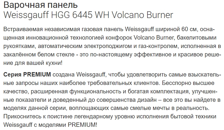 Газовая варочная панель Weissgauff (Вайсгауф) HGG 6445 WH Volcano Burner